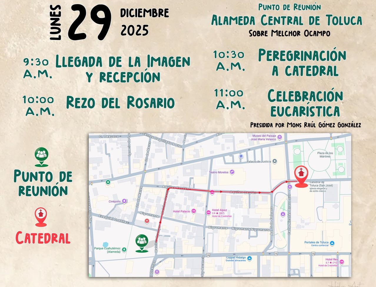 Un autobús saldrá desde la parroquia que nos dejara en el lugar adecuado y nos regresara a la parroquia al finalizar el evento.