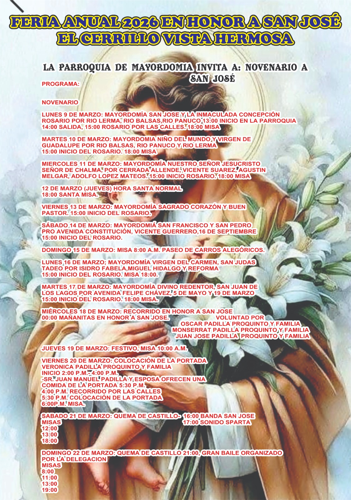 Invitación al novenario en la parroquia en honor a nuestro santo patrono San José